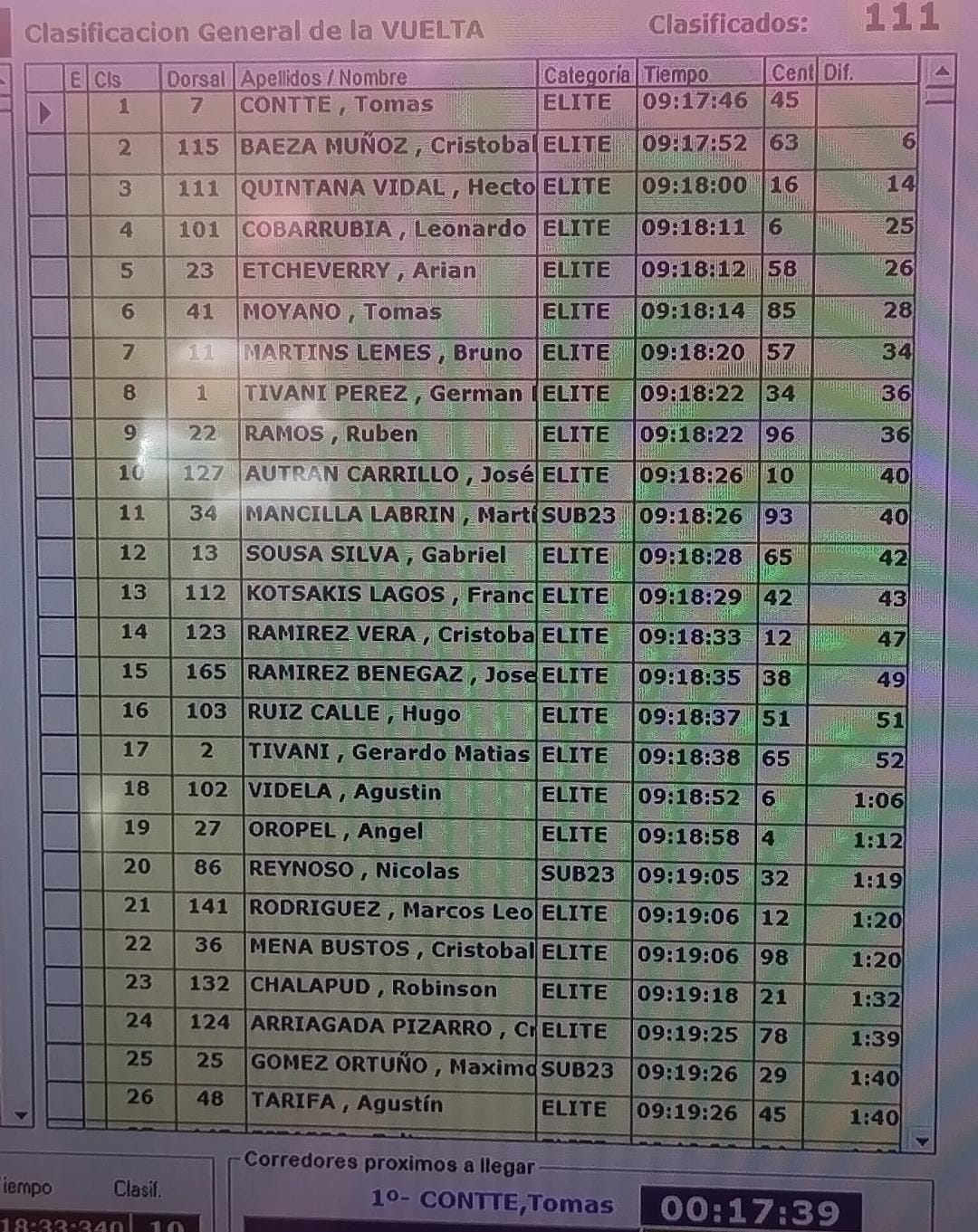El ciclista bonaerense registró un tiempo de 17:39.450, el mejor de la jornada, para quedarse con una victoria contundente que lo catapultó a lo más alto de la carrera. Su rendimiento fue sólido de principio a fin, marcando referencias claras desde los primeros parciales y confirmando su condición de especialista contra el reloj.